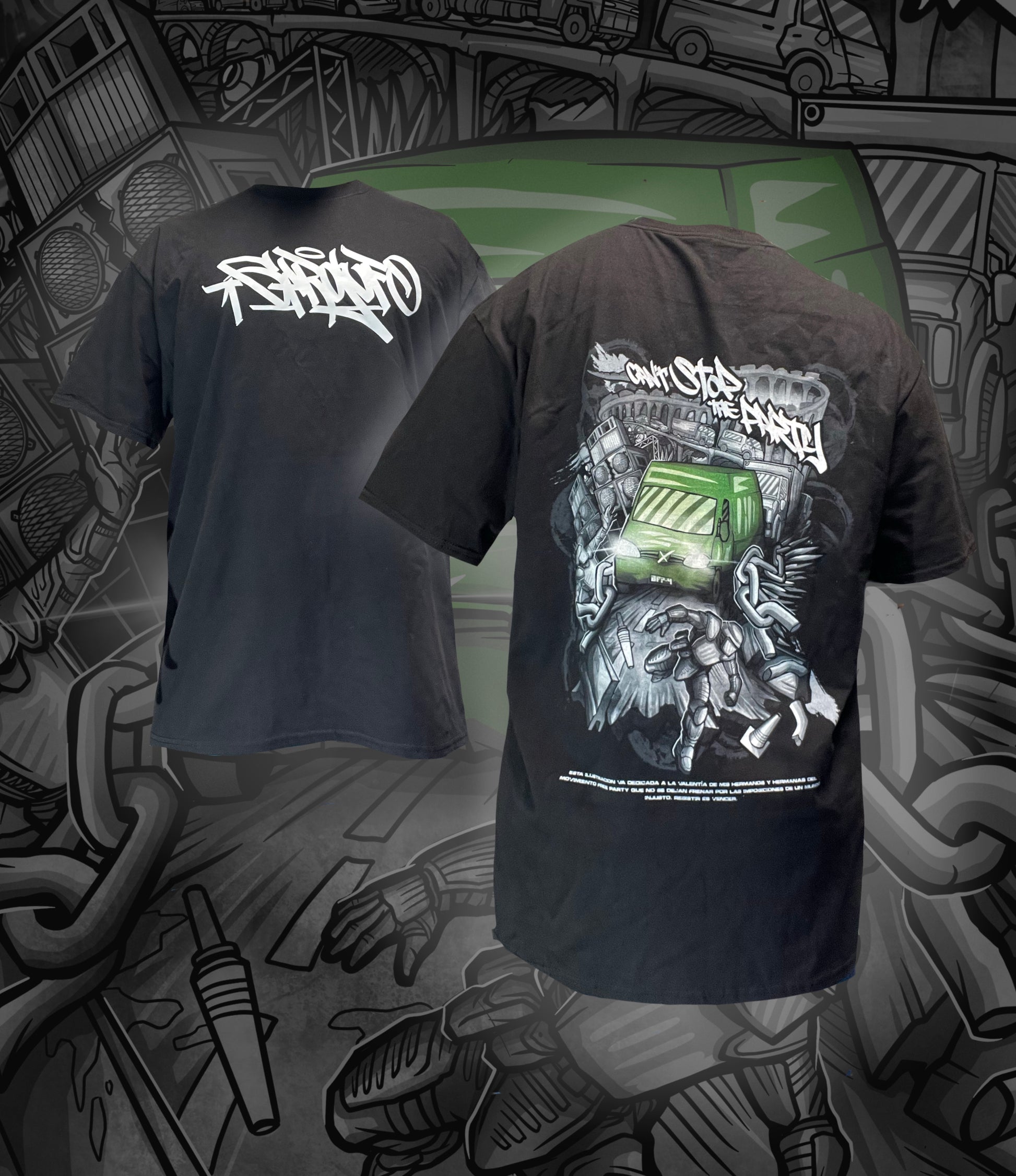 Hecha a pedido en el caso de no haber stock llega en unas 2 semanas, cualquier talla es posible. Cualquiera de los diseños está disponible también en sudaderas.